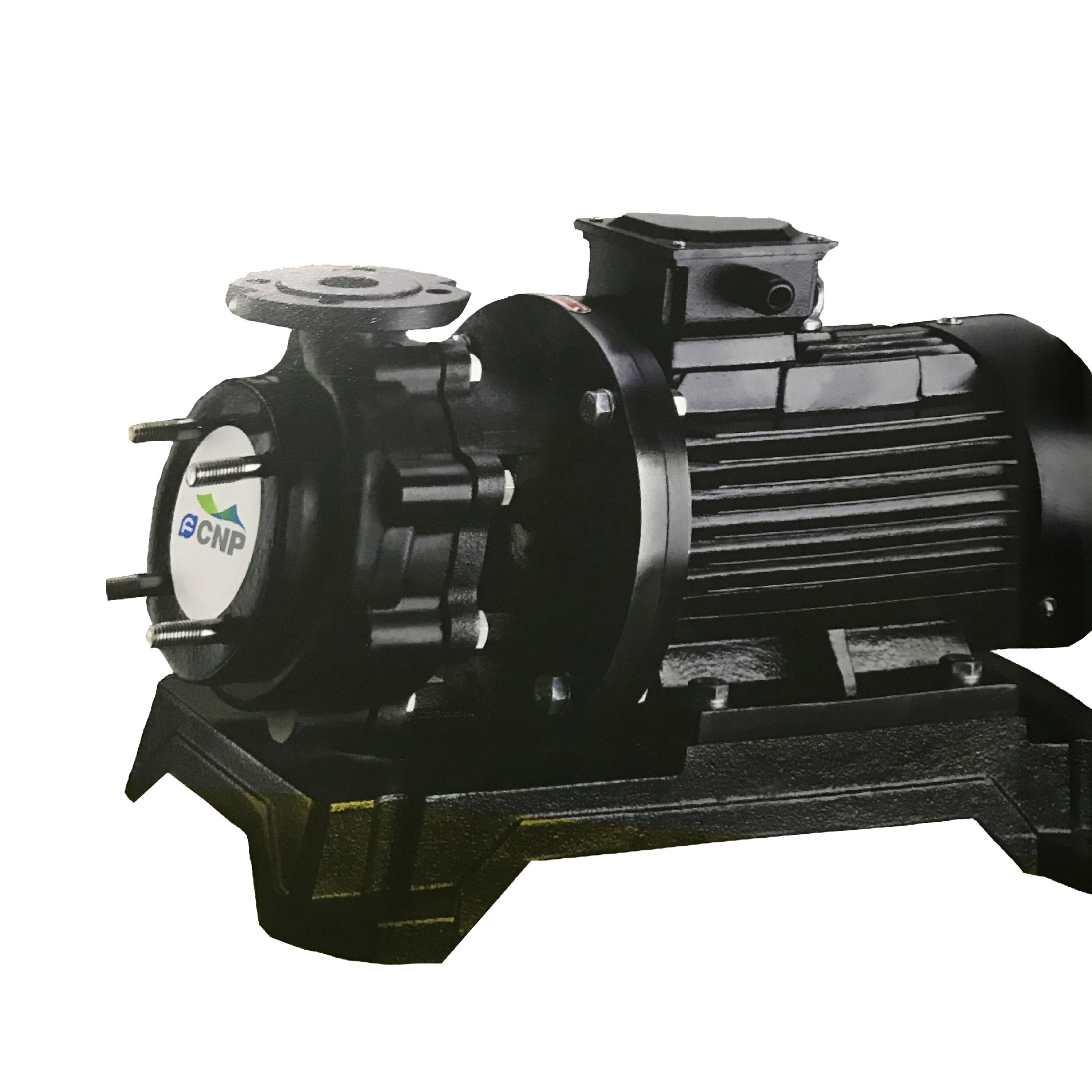 南方SZ單級臥式氟塑料離心泵,配加長軸電機,軸向入口和徑向出口,電機軸與葉輪為直聯式,過流部件均采用氟塑料(F26、F46)。